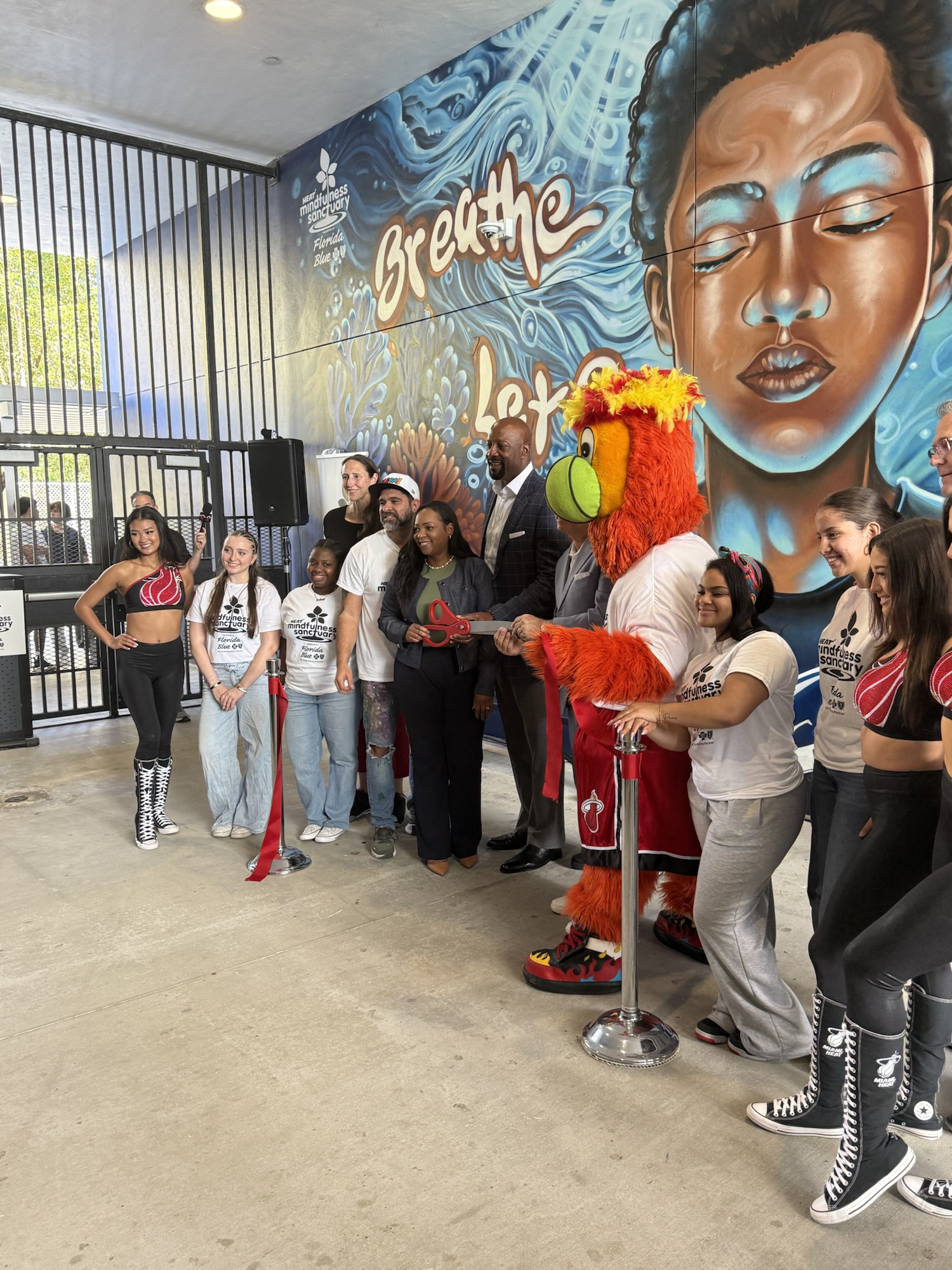 Heat guard Davion Mitchell joined Heat legend Alonzo Mourning, Tracy Mourning, South Florida Market President for Florida Blue David Wagner, and Miami-Dade County Public Schools Officer Lourdes Diaz for the big reveal. The Heat mascot Burnie and the Heat Dancers added that extra flair, hyping up the crowd during the ribbon-cutting ceremony. Mourning spoke passionately about the importance of mental health, emphasizing how this sanctuary will help kids decompress and recharge amid daily stresses.